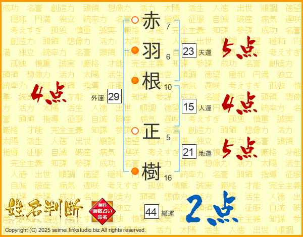 赤羽根正樹さんの総運は44画の2点!