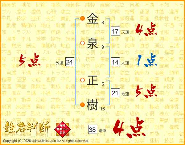 金泉正樹さんの総運は38画の4点!