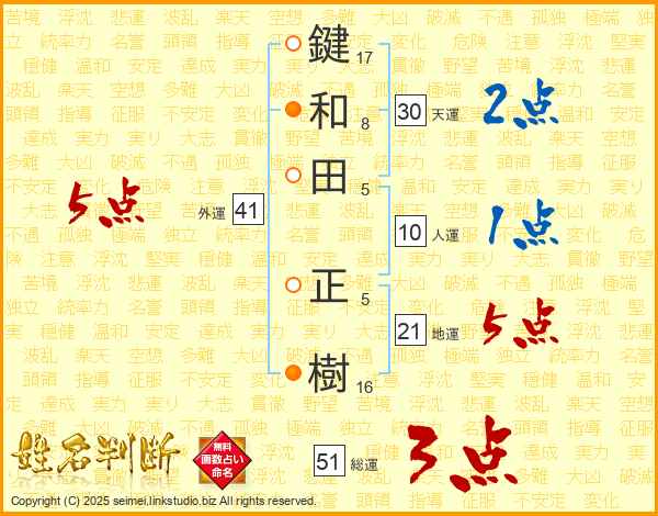 鍵和田正樹さんの地運は21画の5点!
