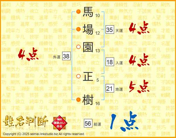 馬場園正樹さんの外運は38画の4点!