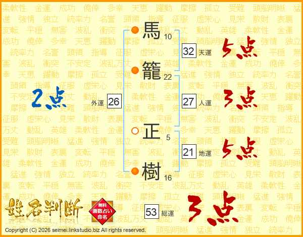 馬籠正樹さんの総運は53画の3点!