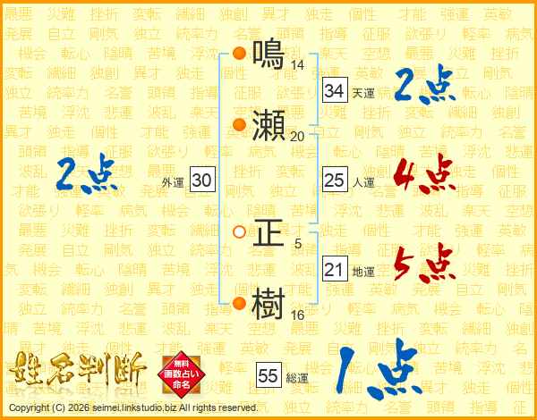 鳴瀬正樹さんの総運は55画の1点!