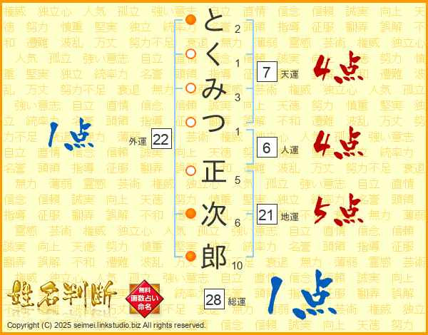 と(2画)く(1画)み(3画)つ(1画) 正(5画)次(6画)郎(10画)