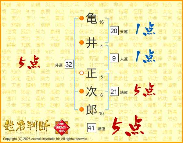 亀井正次郎さんの総運は41画の5点!