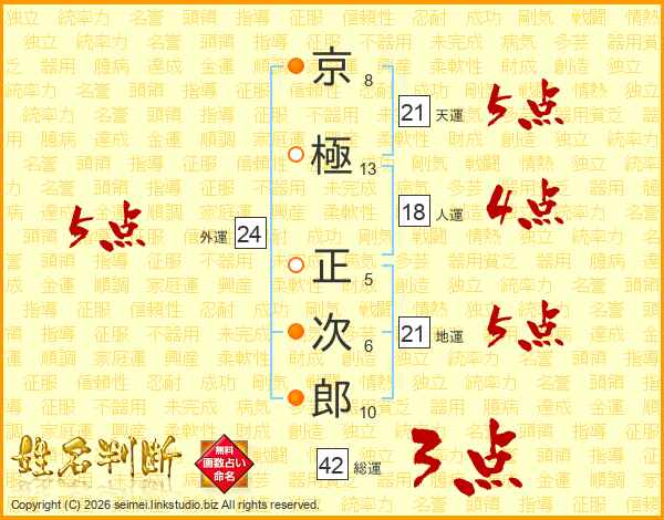 京極正次郎さんの天運は21画の5点!