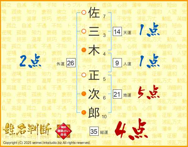 佐三木正次郎さんの総運は35画の4点!