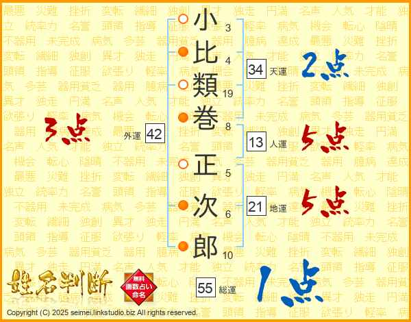 小比類巻正次郎さんの総運は55画の1点!