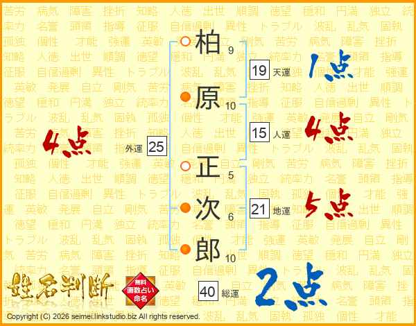 柏原正次郎さんの総運は40画の2点!