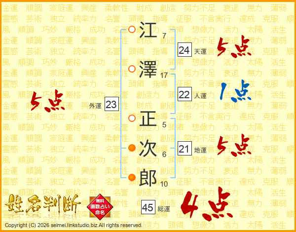 江(7画)澤(17画) 正(5画)次(6画)郎(10画)