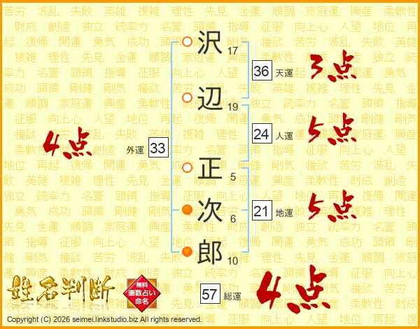 沢辺正次郎さんの総運は57画の4点!