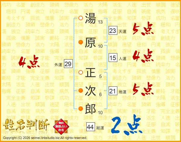 湯原正次郎さんの天運は23画の5点!