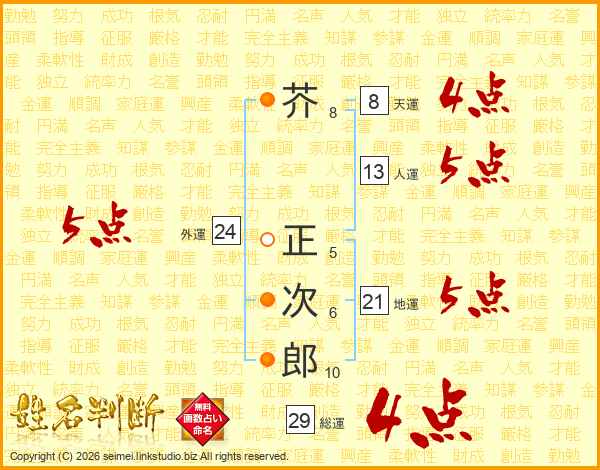 芥正次郎さんの総運は29画の4点!