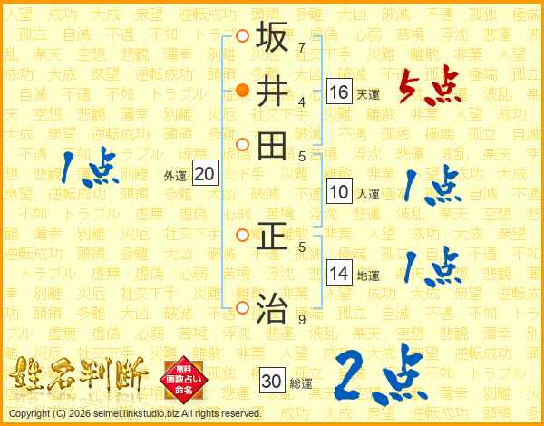 坂(7画)井(4画)田(5画) 正(5画)治(9画)