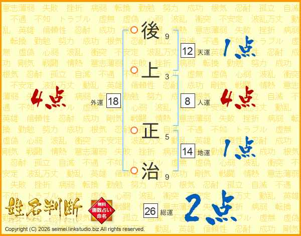 後(9画)上(3画) 正(5画)治(9画)