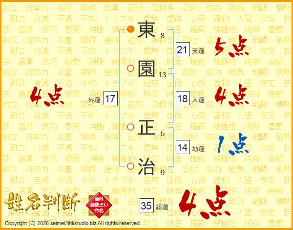 東園正治さんの天運は21画の5点!