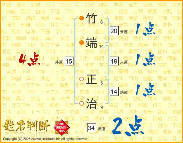 竹端正治さんの地運は14画の1点!