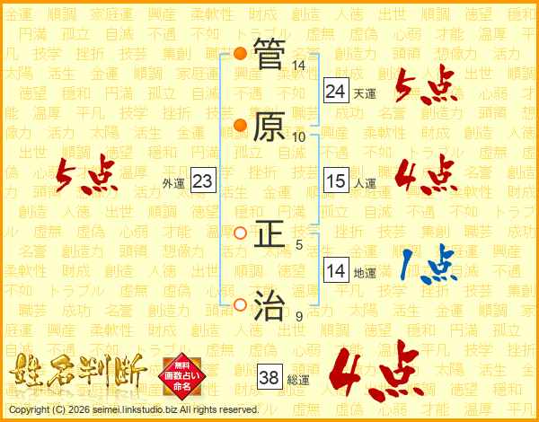 管原正治さんの総運は38画の4点!