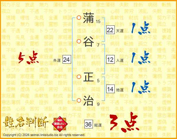 蒲谷正治さんの天運は22画の1点!