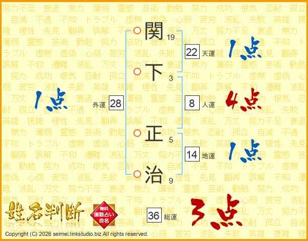 関下正治さんの総運は36画の3点!