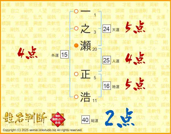 一(1画)之(3画)瀬(20画) 正(5画)浩(11画)