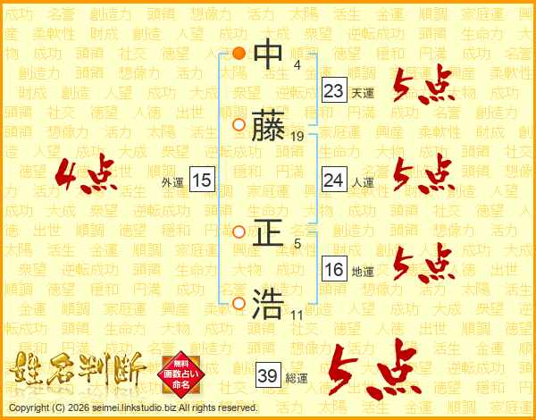 中藤正浩さんの総運は39画の5点!