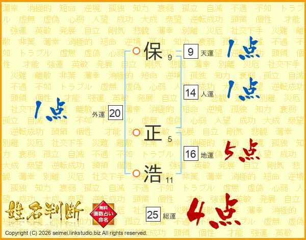 保正浩さんの総運は25画の4点!