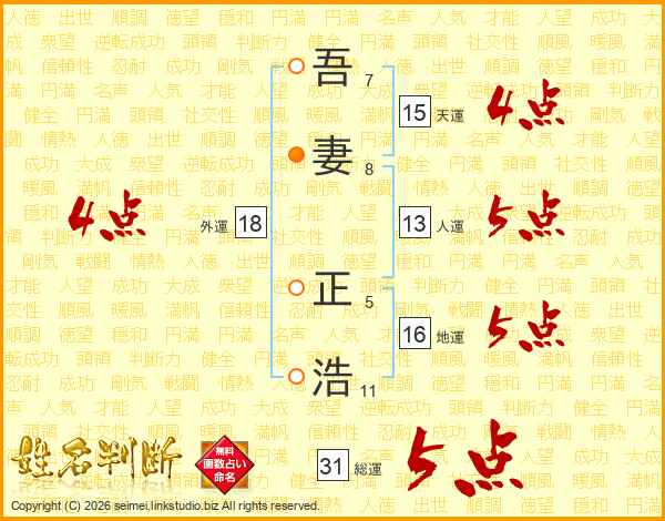 吾妻正浩さんの総運は31画の5点!