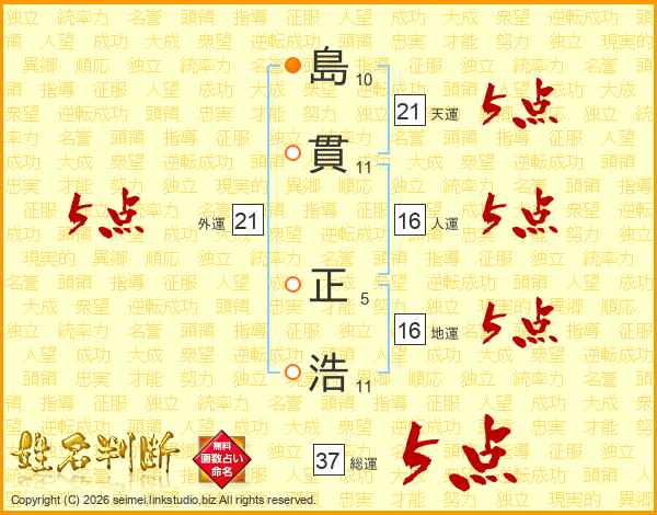 島貫正浩さんの天運は21画の5点!