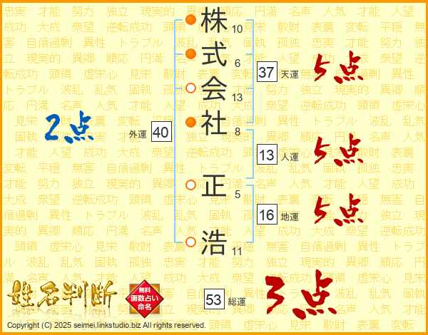 株式会社正浩さんの総運は53画の3点!