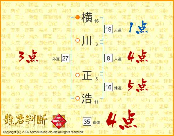 横川正浩さんの天運は19画の1点!