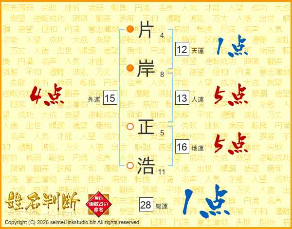 片岸正浩さんの人運は13画の5点!