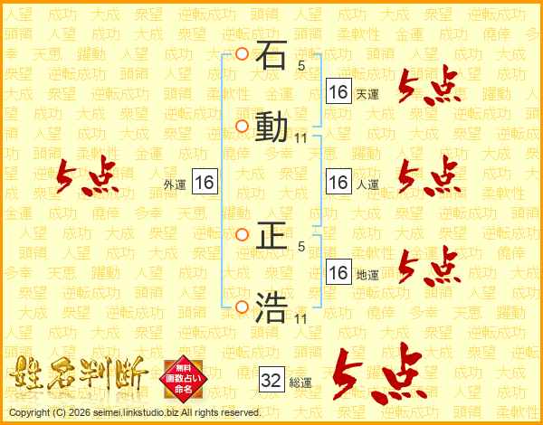石動正浩さんの総運は32画の5点!