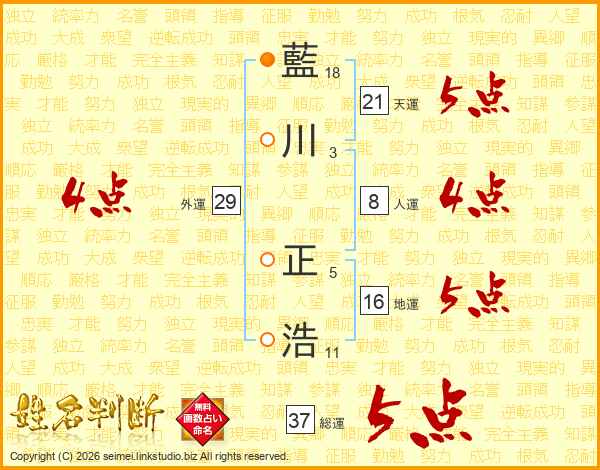 藍川正浩さんの総運は37画の5点!