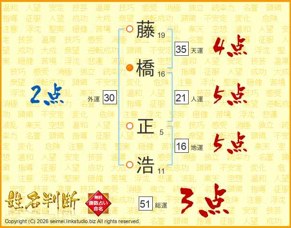 藤(19画)橋(16画) 正(5画)浩(11画)