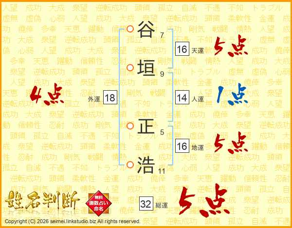 谷垣正浩さんの総運は32画の5点!