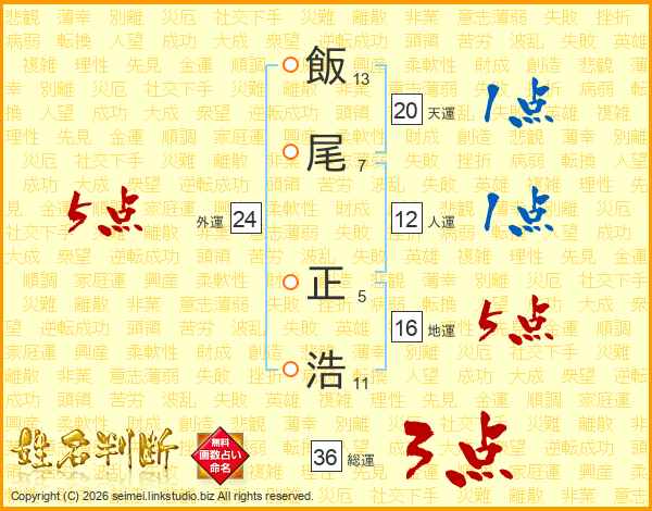 飯尾正浩さんの総運は36画の3点!