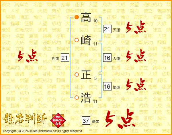 高崎正浩さんの総運は37画の5点!