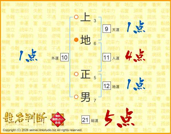 上地正男さんの総運は21画の5点!