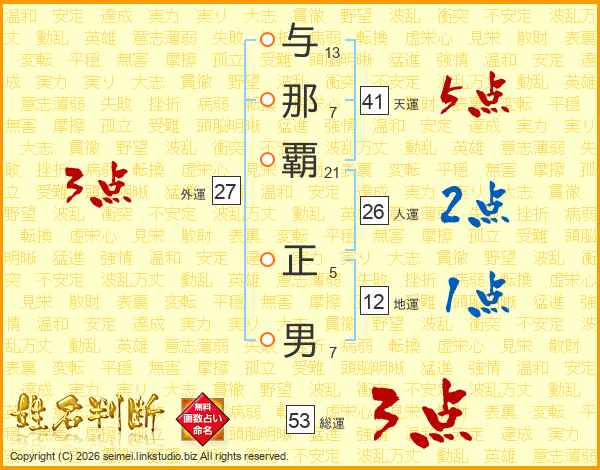 与那覇正男さんの天運は41画の5点!