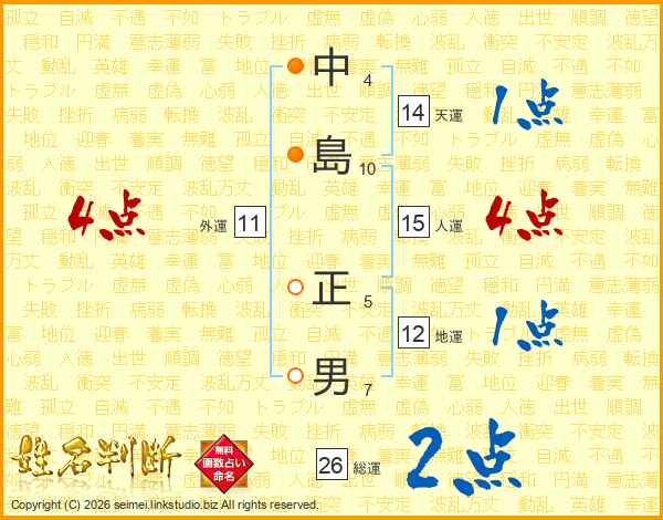 中島正男さんの天運は14画の1点!