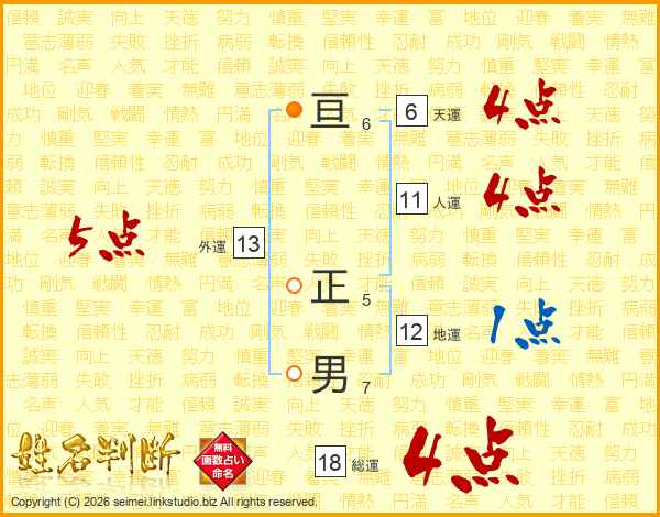 亘正男さんの総運は18画の4点!