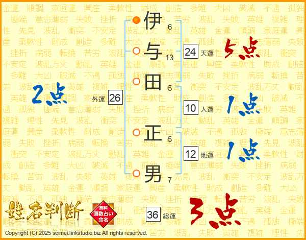 伊与田正男さんの総運は36画の3点!