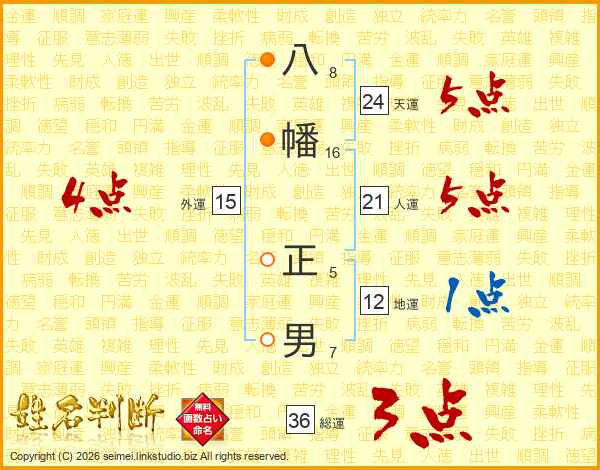 八幡正男さんの総運は36画の3点!