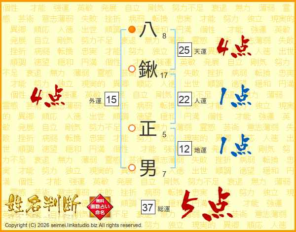 八鍬正男さんの総運は37画の5点!