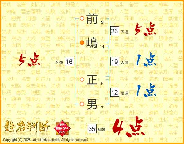 前嶋正男さんの総運は35画の4点!