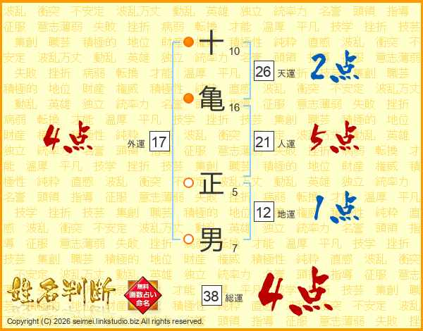 十亀正男さんの天運は26画の2点!