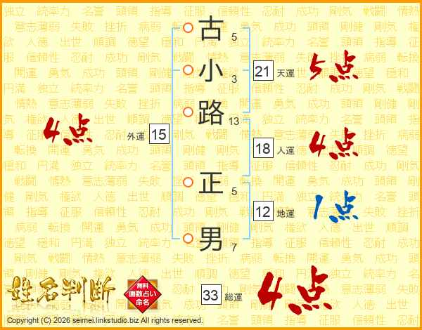 古小路正男さんの総運は33画の4点!
