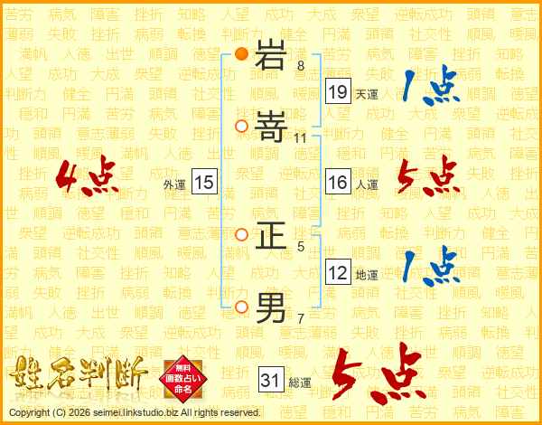 岩(8画)嵜(11画) 正(5画)男(7画)