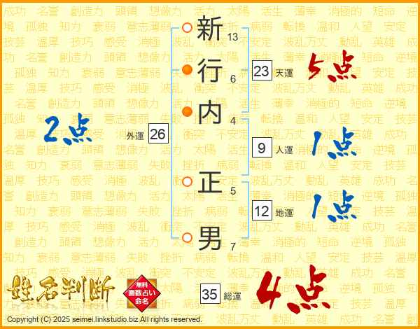 新行内正男さんの総運は35画の4点!