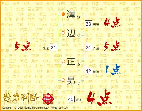 溝辺正男さんの総運は45画の4点!